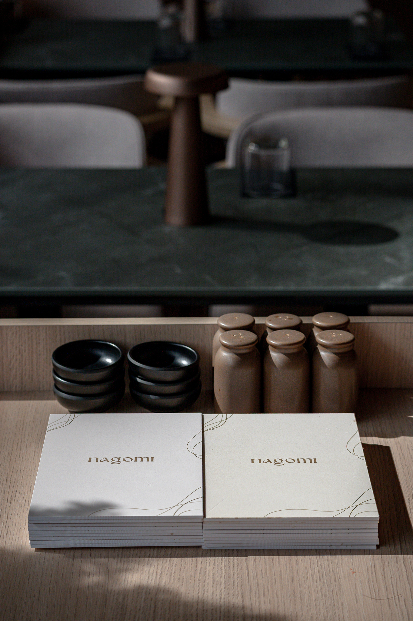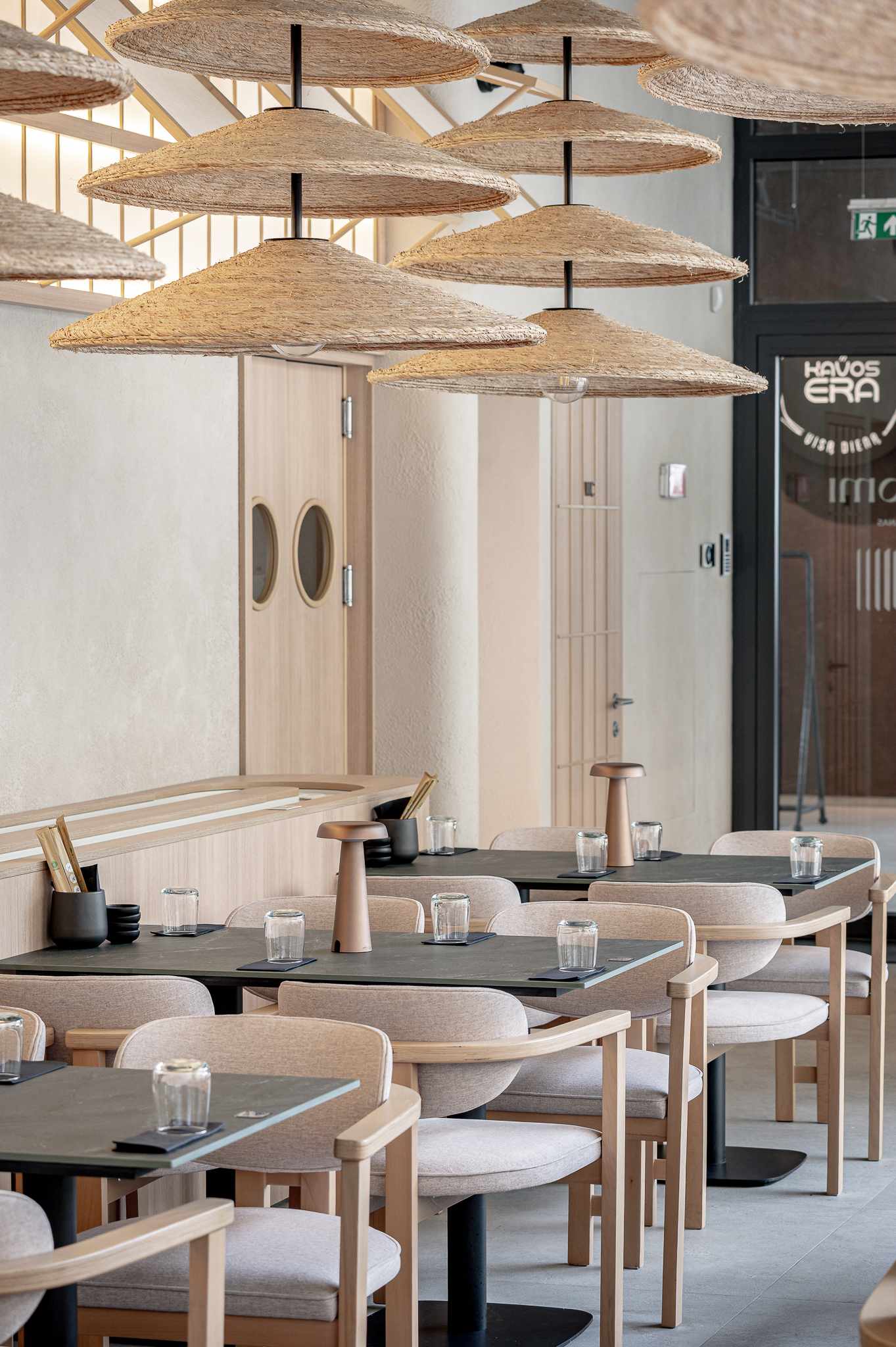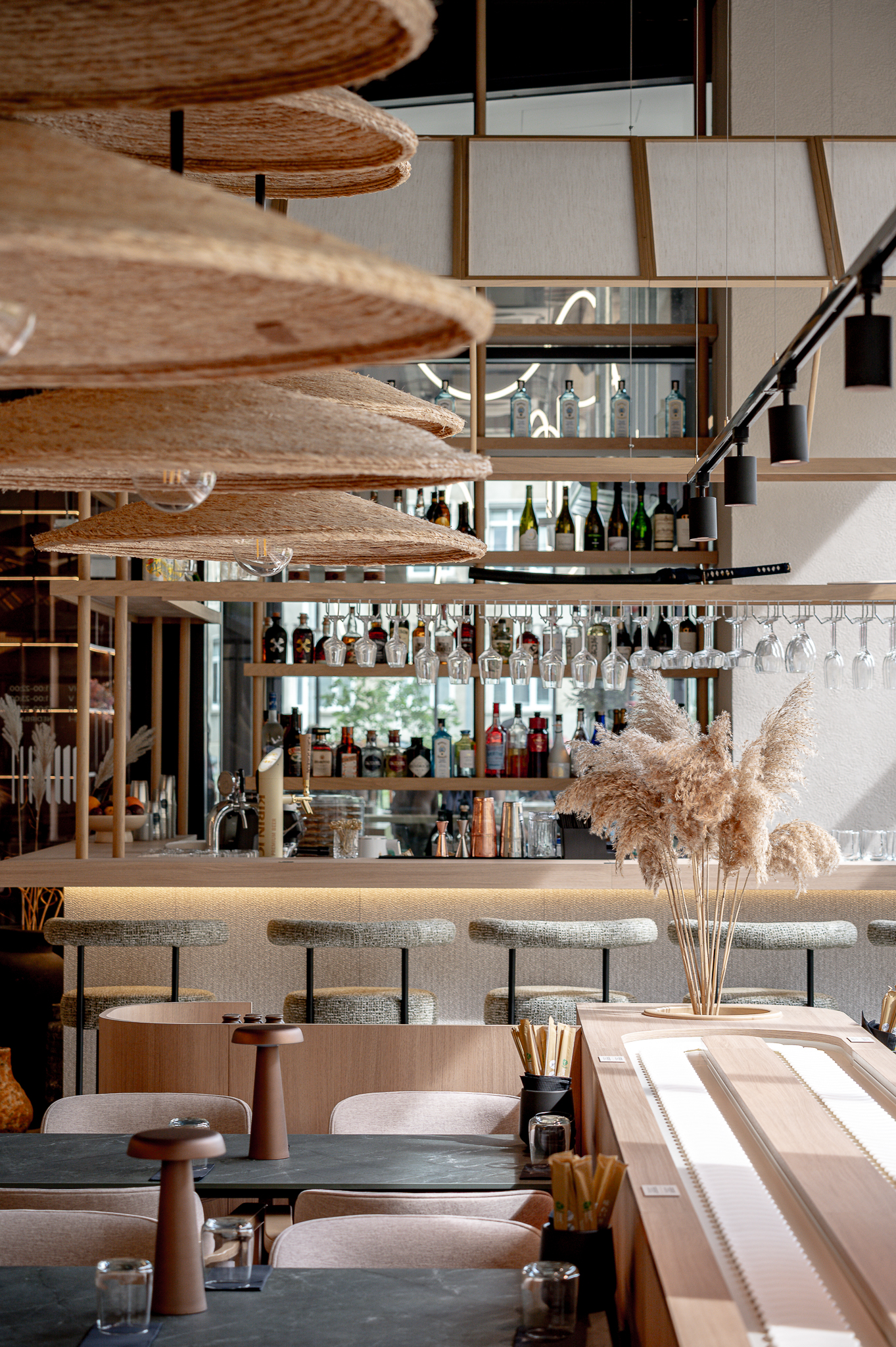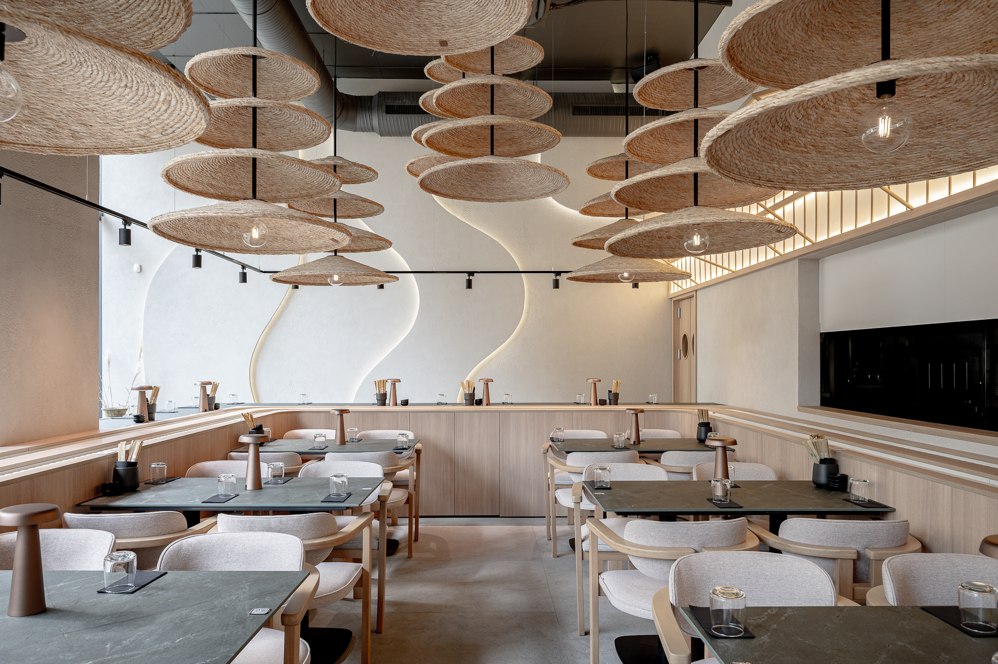 Projektas: restoranas “Nagomi”Metai: 2025Vieta: Vilnius, Jasinskio g.14BPlotas: 144kv.mProjekto autorė: Kotryna KrapaitėNuotraukų autorius: Benas Šileika