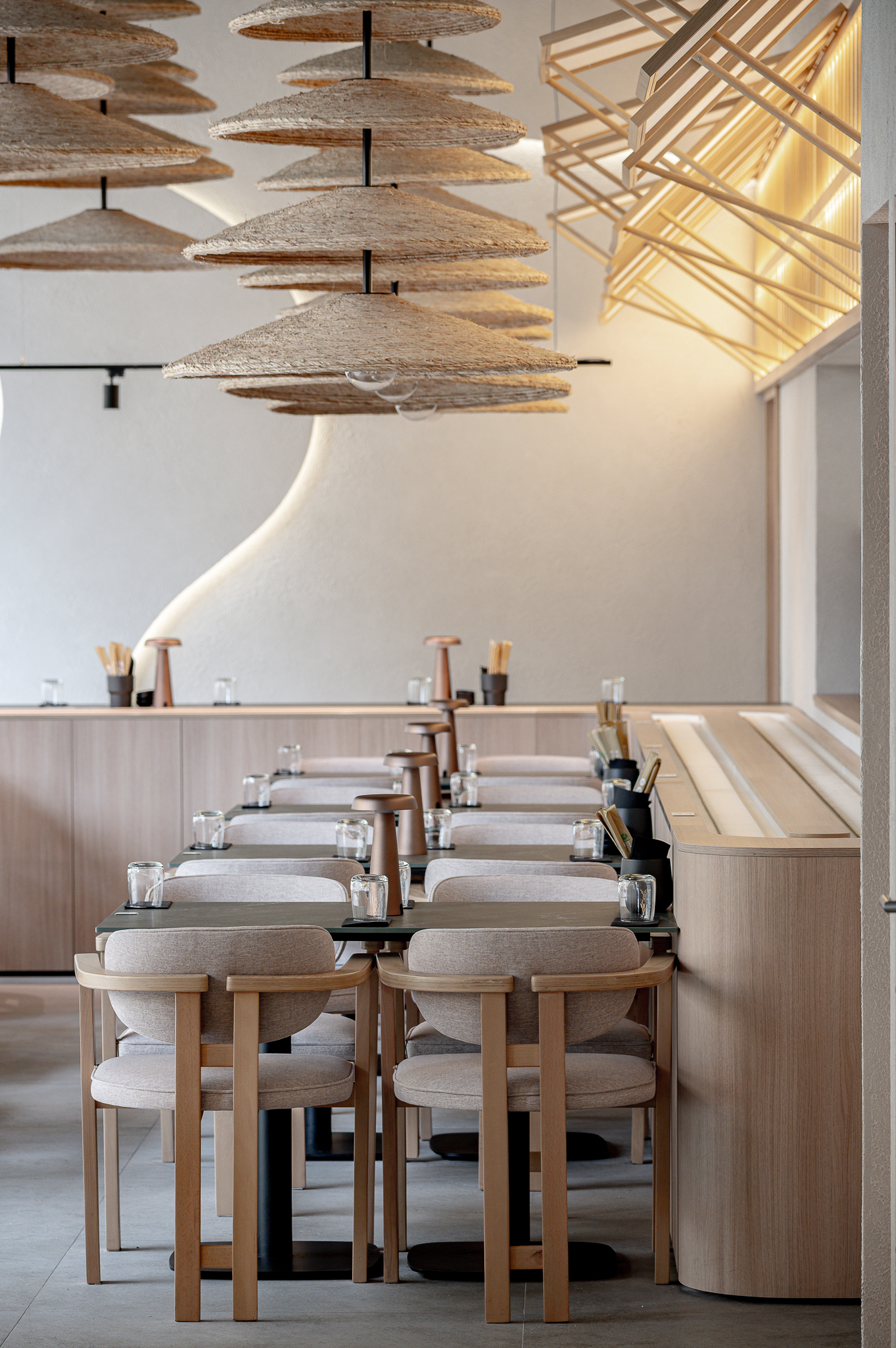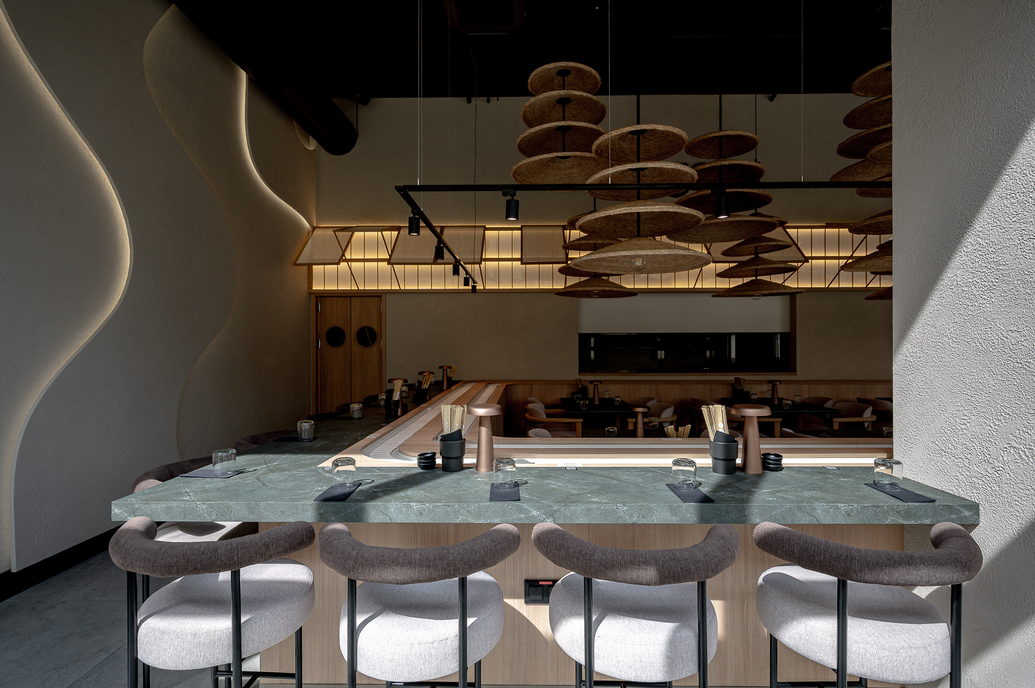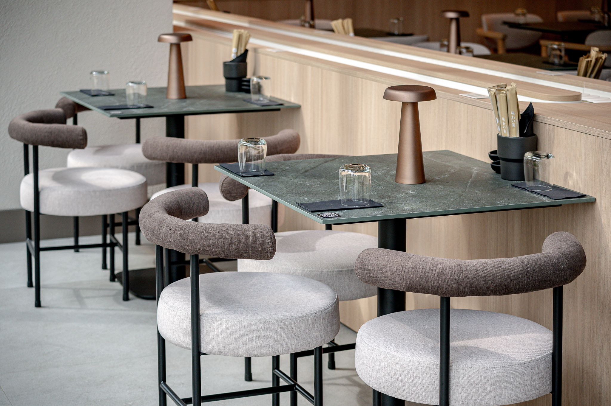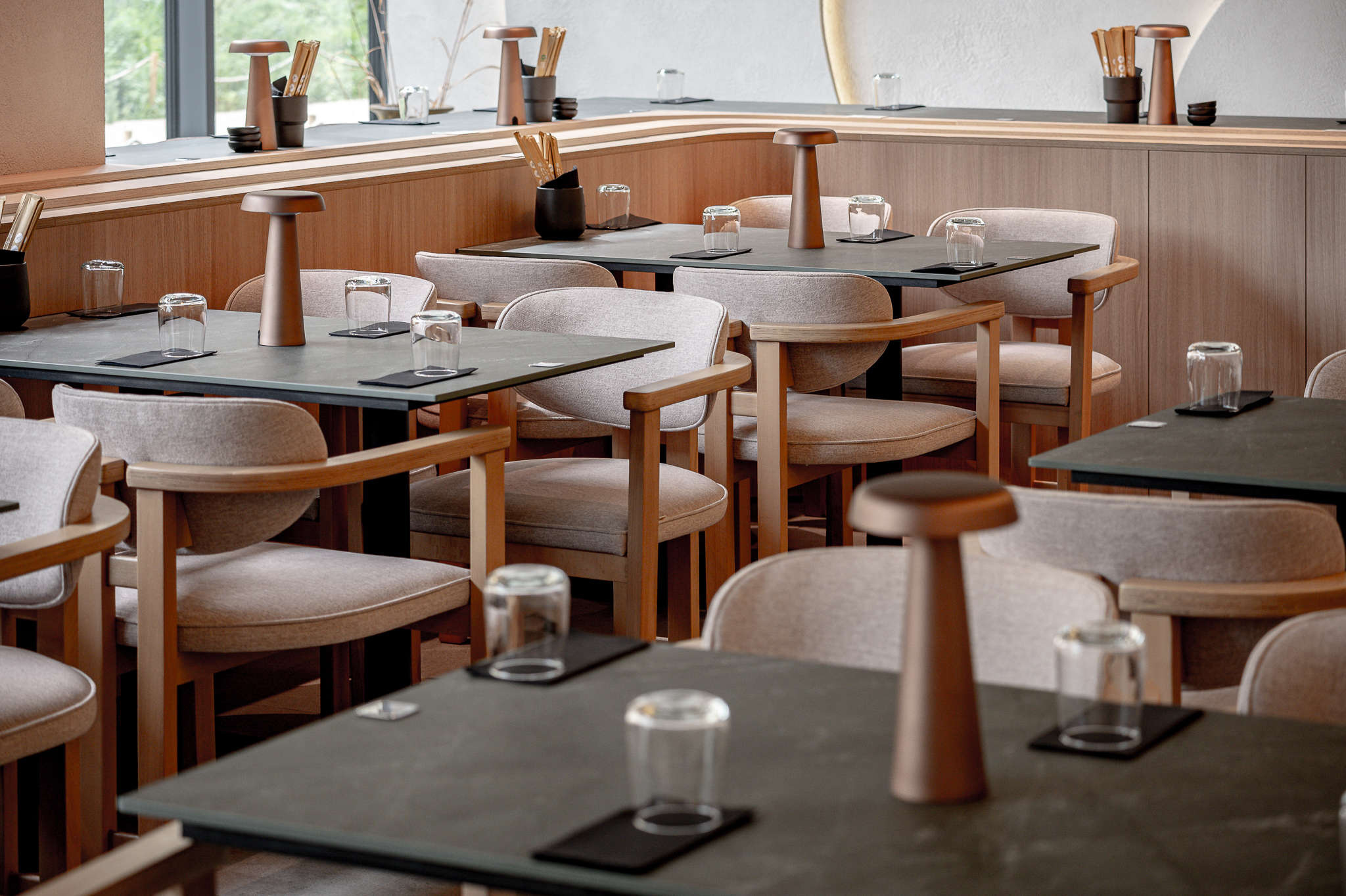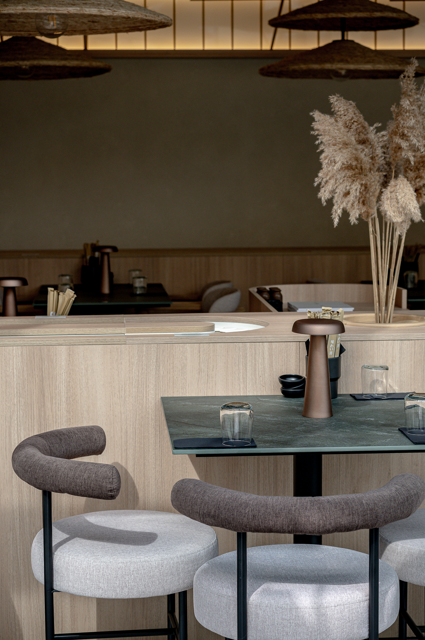 Projektas: restoranas “Nagomi”Metai: 2025Vieta: Vilnius, Jasinskio g.14BPlotas: 144kv.mProjekto autorė: Kotryna KrapaitėNuotraukų autorius: Benas Šileika