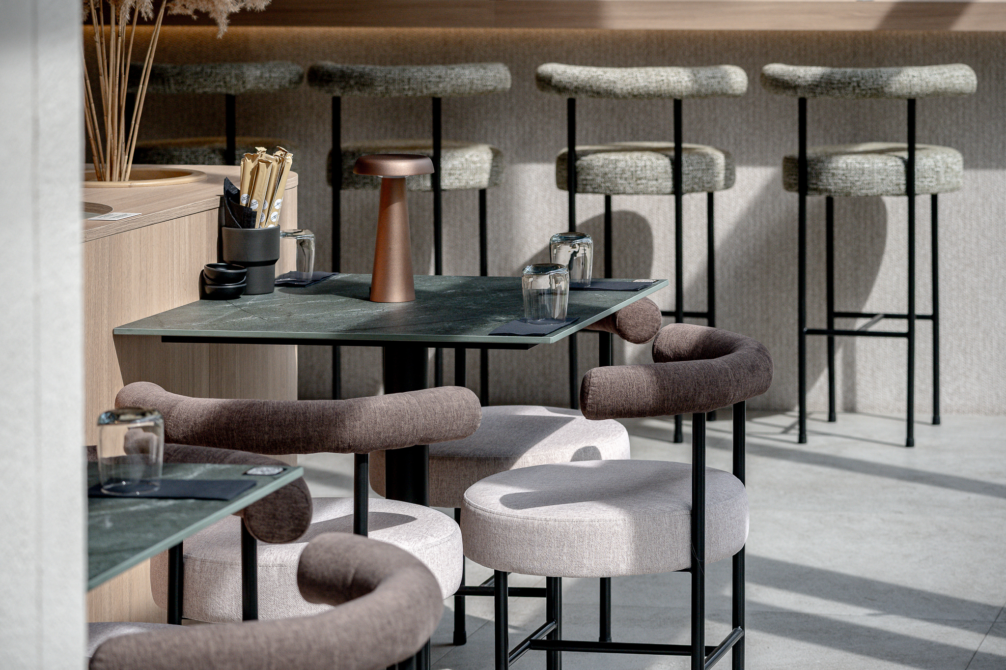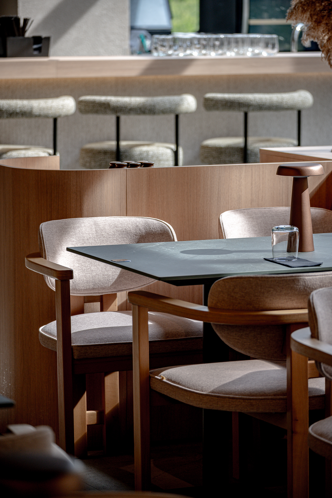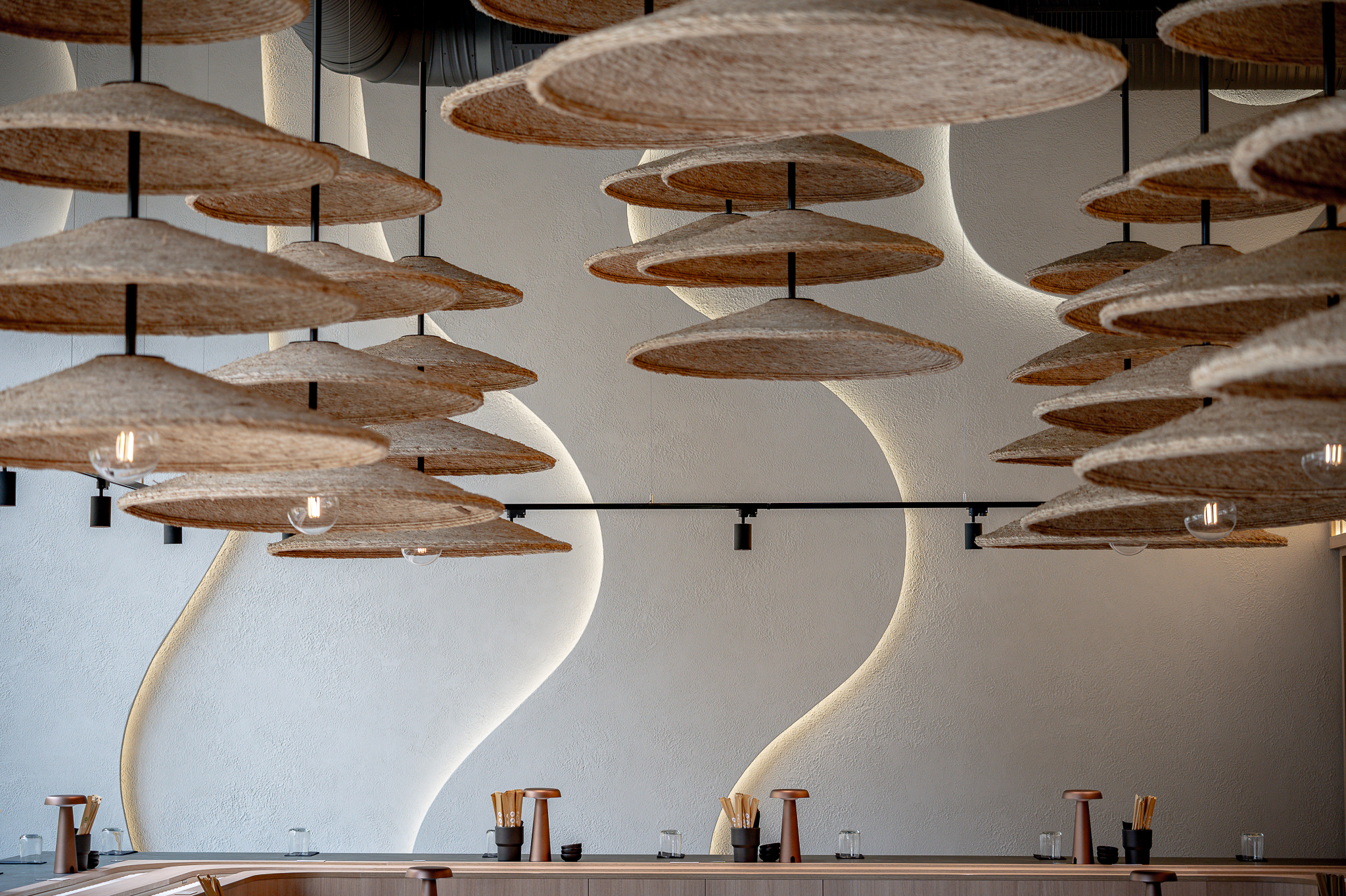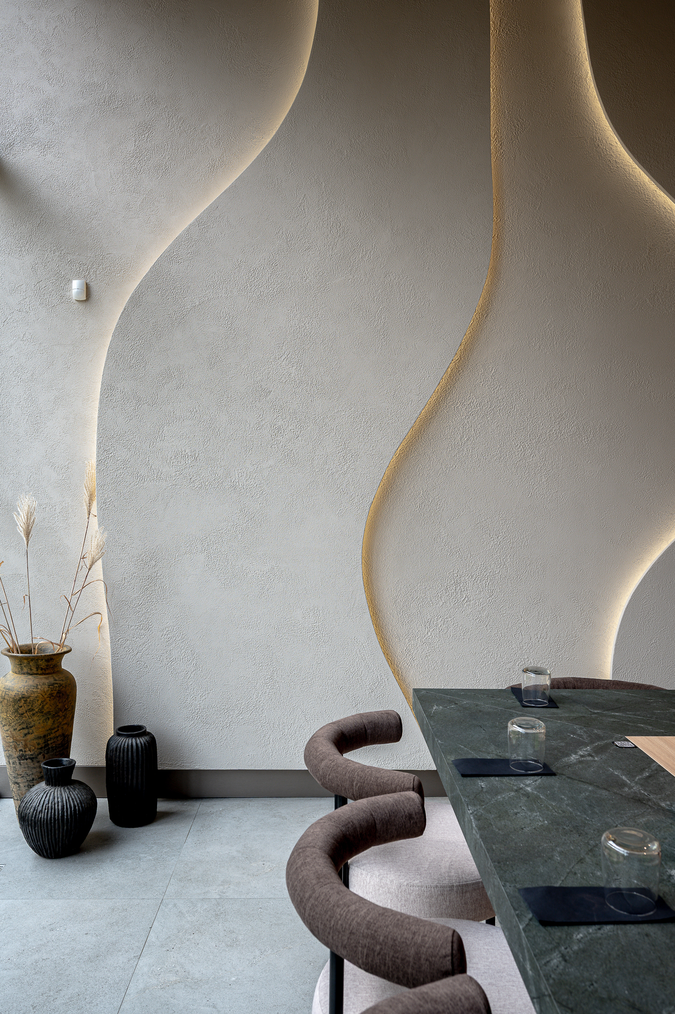 Projektas: restoranas “Nagomi”Metai: 2025Vieta: Vilnius, Jasinskio g.14BPlotas: 144kv.mProjekto autorė: Kotryna KrapaitėNuotraukų autorius: Benas Šileika